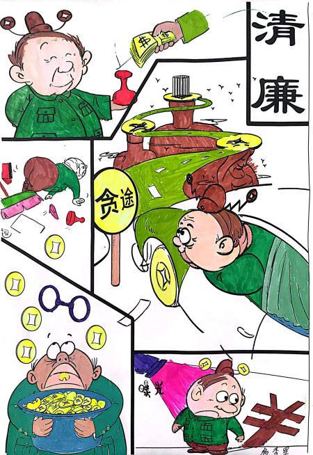 張璞漫畫作品——《倡廉提作風,奮戰四季度》